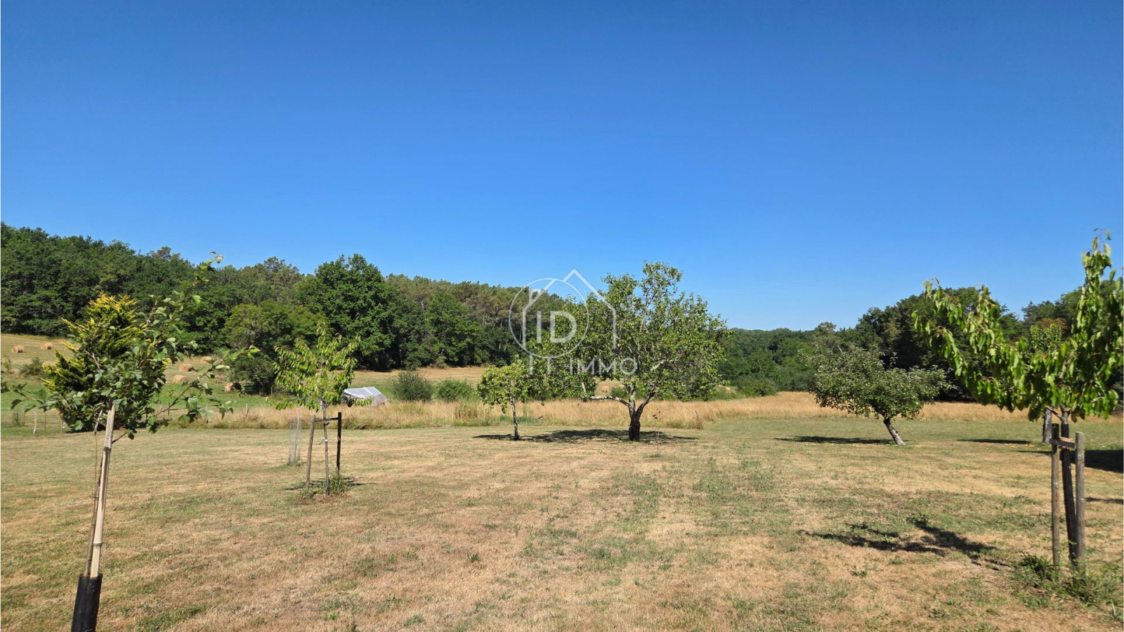 Terrain clos avec de nombreux arbres fruitiers.